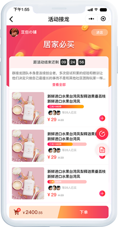订单类型新增社群接龙订单,随时查看订单记录、物流等相关数据 明细,让您的业务省时省力又省心。