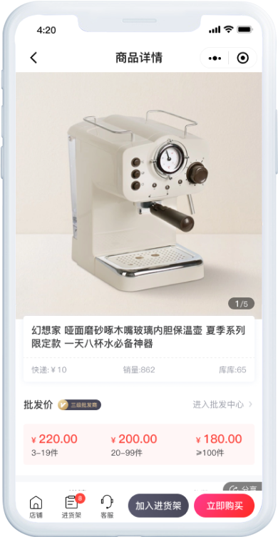 支持不同商品设置不同的起批数量,达到设置的起批数量才能够下单购买。